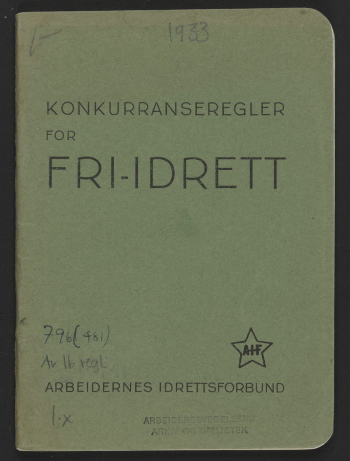 Hofmo, Rolf: Idrett og politikk: Arbeidernes idrettsforbund opgaver og mål (Det norske arbeiderpartis forlag 1933)